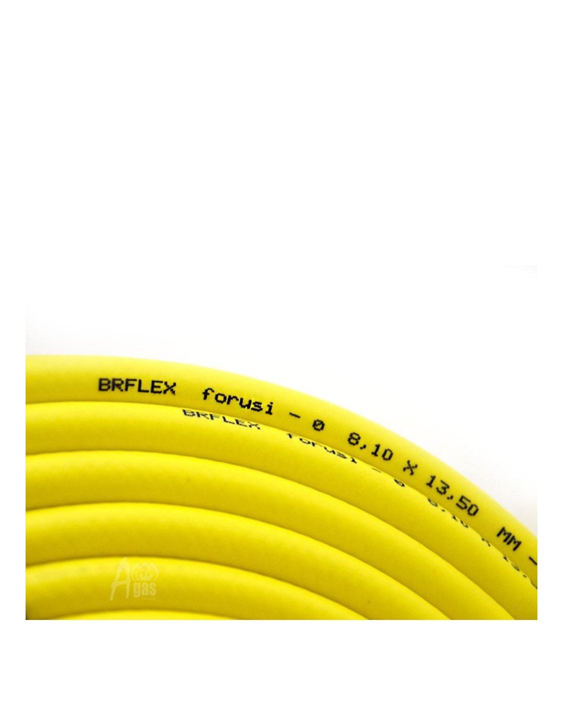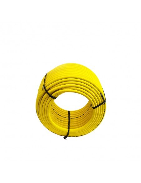 Rollo de manguera de uso industrial reforzada para instalaciones de gas GLP. Especificaciones.- Presión de trabajo máximo: 250psi/17Bar. Medidas: 08.10x13.50mm. Largo: 50 metros.