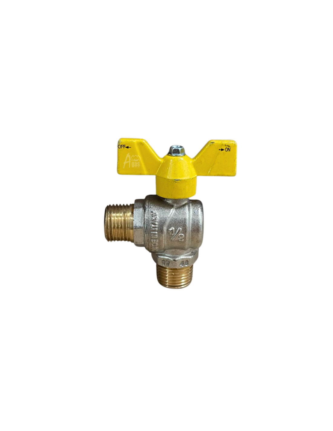Llave angular de paso de 1/2 ” de gas GLP, tipo mariposa, no reduce el flujo y evita las perdidas de presión, permite el cierre rápido del paso total de gas.