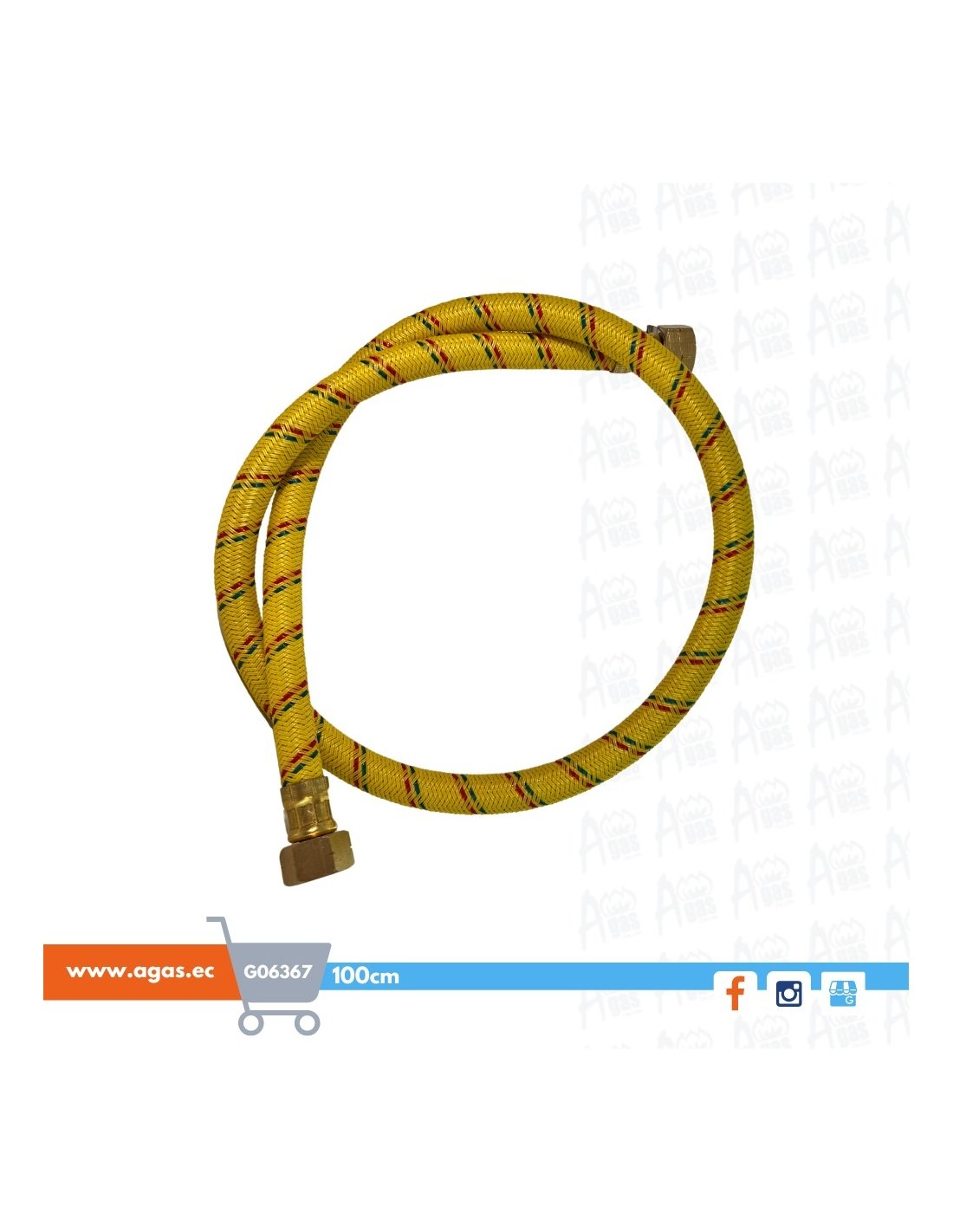 Largo: 100 cm. Manguera metálica reforzada de acero inoxidable trenzado. Incluye dos empaques. 100% segura. Adecuado para instalaciones centralizadas de gas. Presión de trabajo hasta 25 bar.
